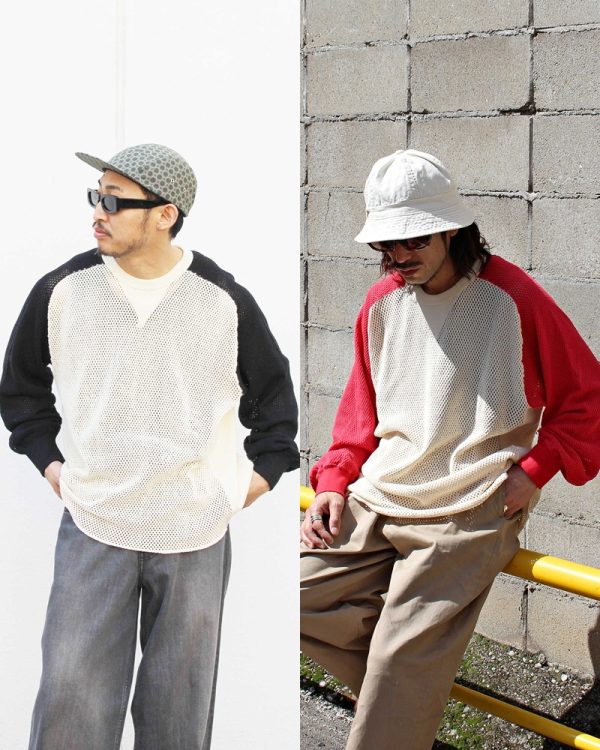 IMPRESTORE インプレストア / Ruker ルーカー | Mesh freedom long t メッシュフリーダムスリーブロンTEE (Natural/Red ナチュラルレッド)